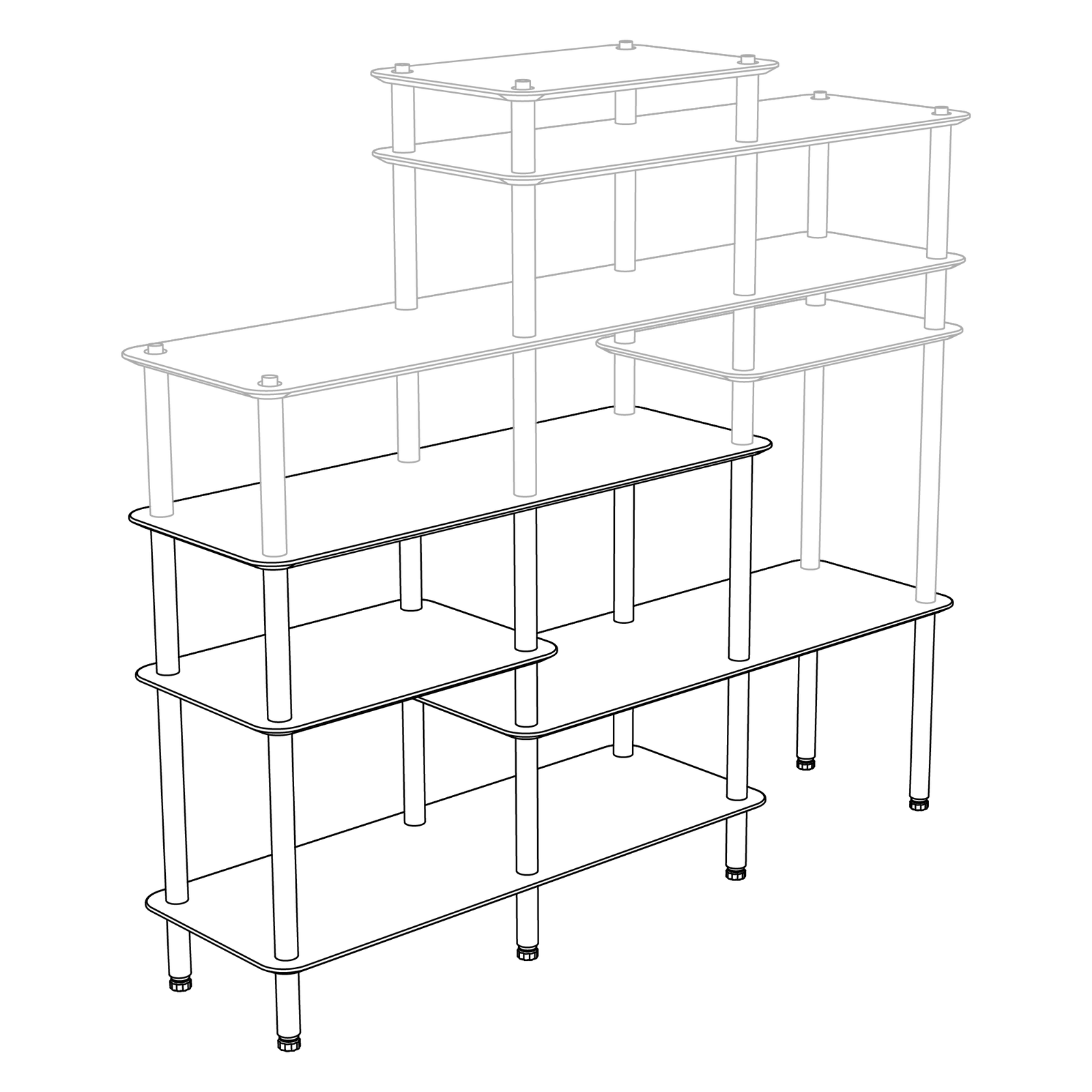 3. Place a medium sized shelf over the exisitng assembly and place a larger set of adjustable feet.