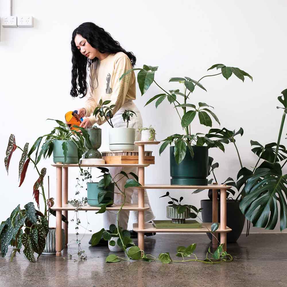 KittaParts is a truly modular shelving system. The threaded timber system is completely reconfigurable.